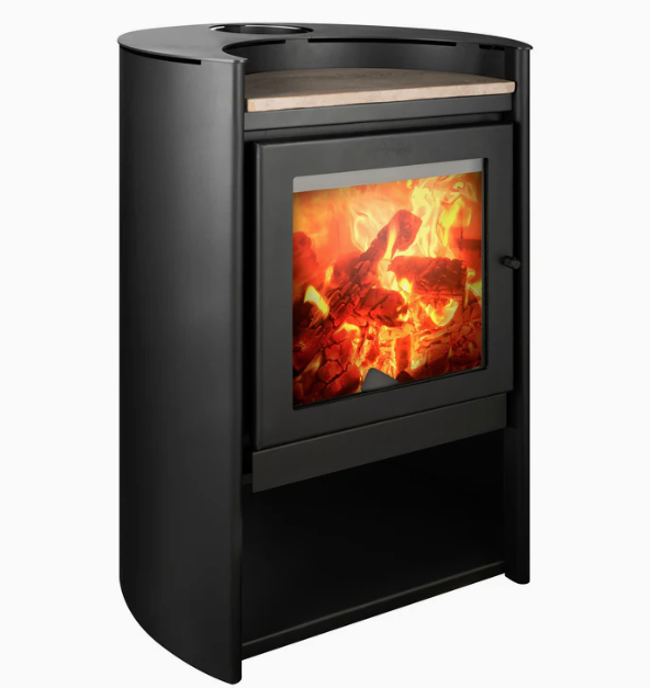 Incorpora una cámara de combustión optimizada para uso doméstico, que reduce la salida de humo al ambiente. Su cristal cerámico resistente al calor permite visualizar la llama de forma segura.