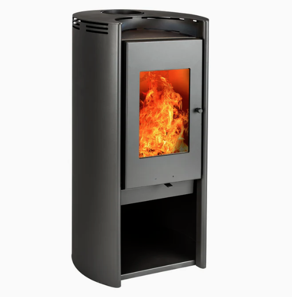 Funciona con leña seca y cuenta con una potencia de 10 kW. Incorpora inyector de aire que facilita el encendido y contribuye a una combustión más eficiente.